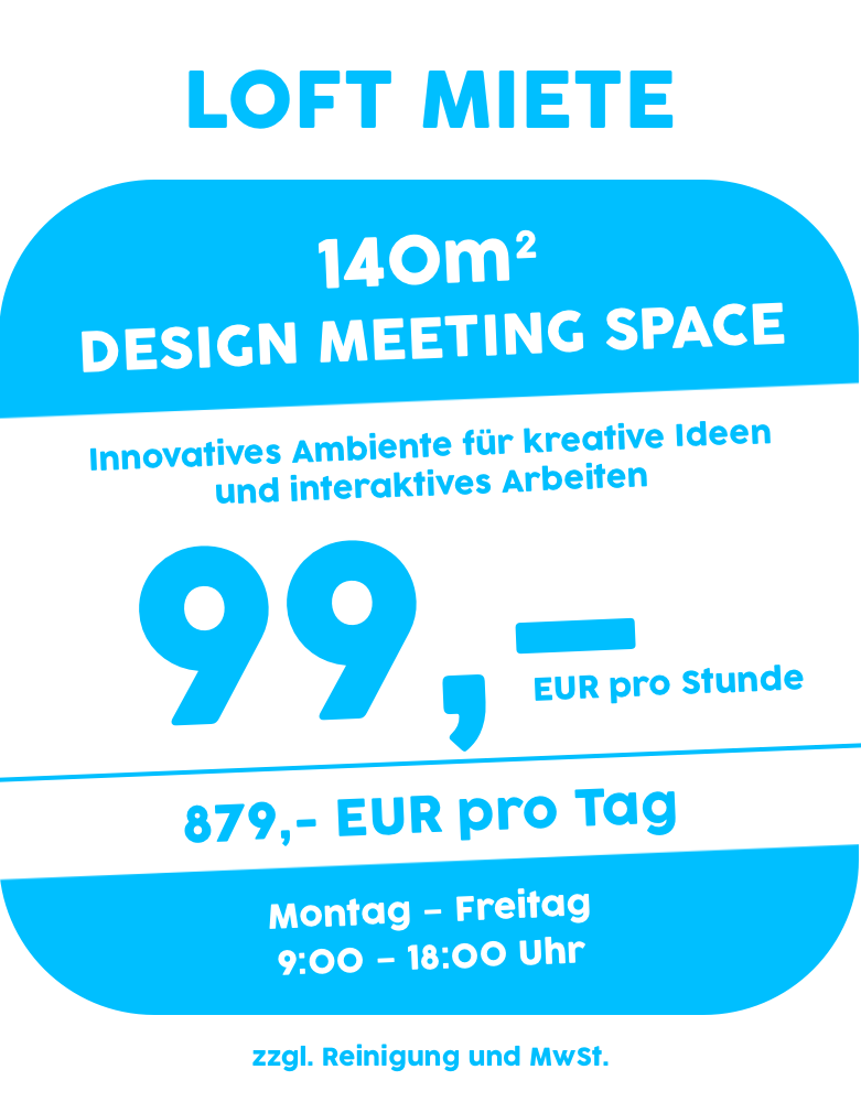 Veranstalten Sie Ihre Meetings und Workshops in unserem unverwechselbaren Design-Loft mitten in Frankfurt – ideal für Ihre Seminare, Offsite-Meetings und kreative Formate mit Anspruch.